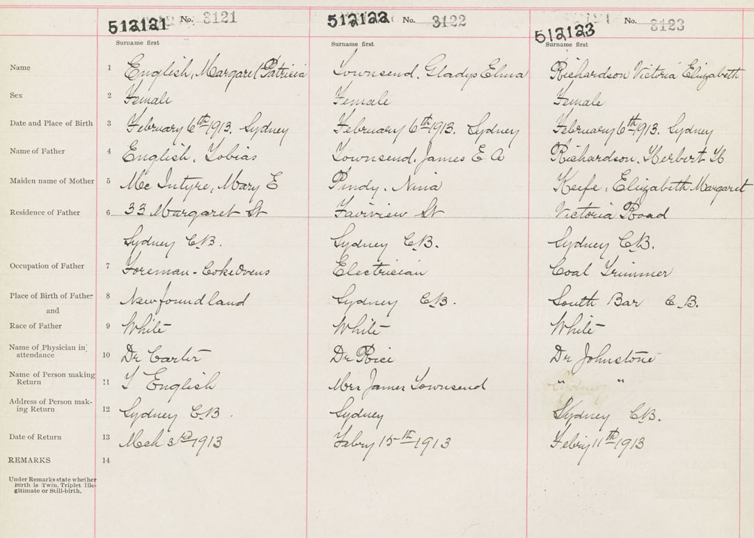 Female Birth Registration: Year: 1913 number: 51200123