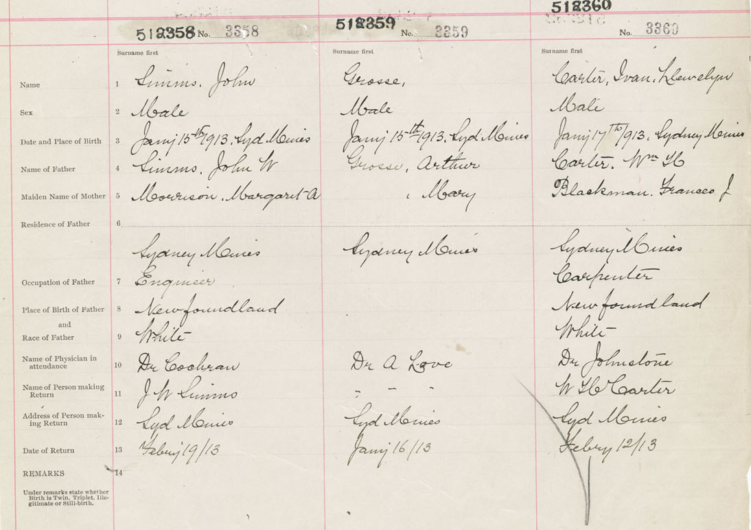 Male Birth Registration: Year: 1913 number: 51200358