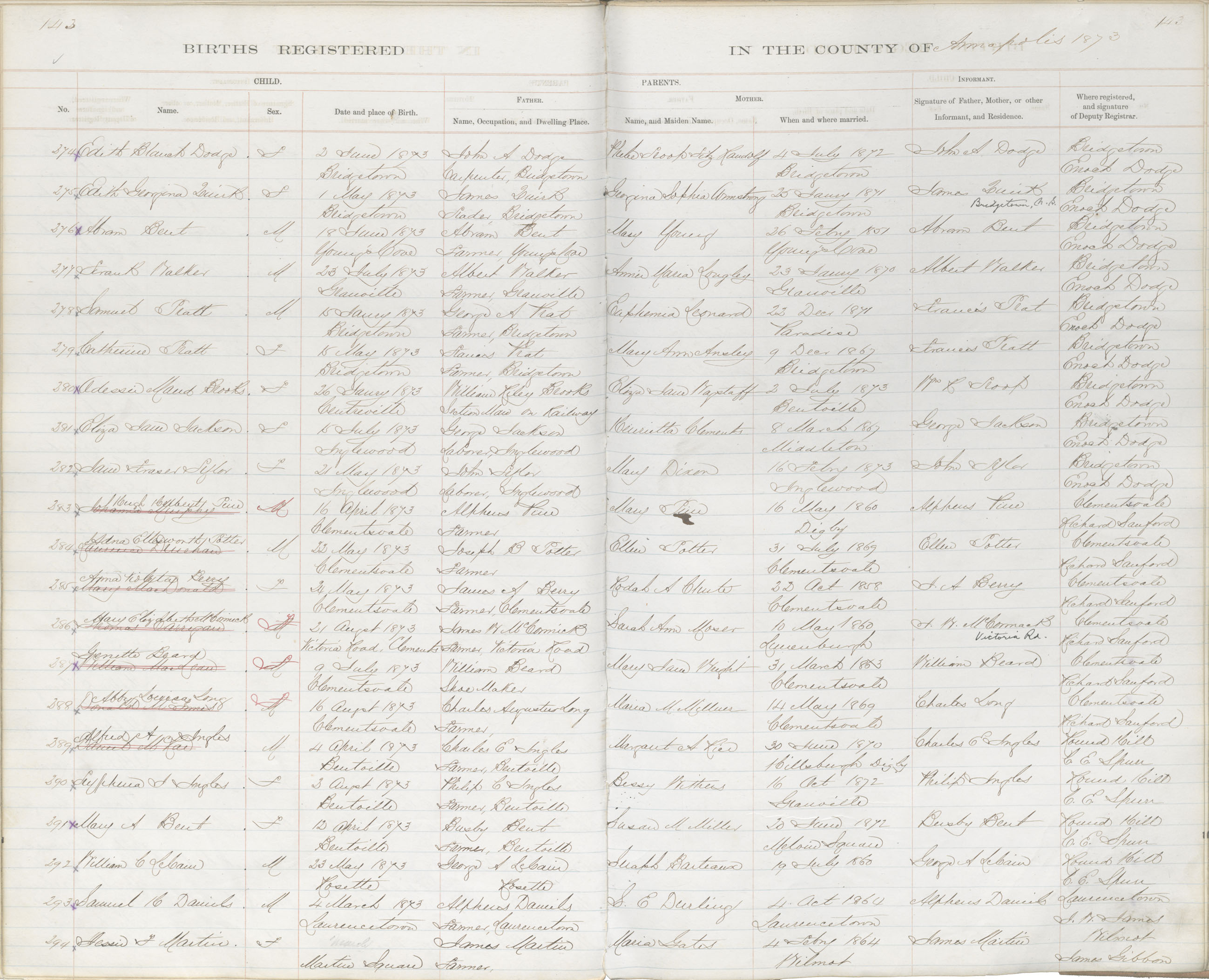 Birth Registration: Year: 1873 book: 1801 page: 143 number: 274