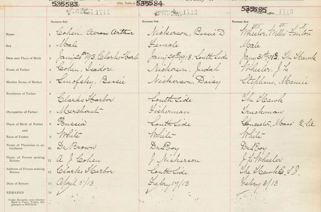 Male Birth Registration: Year: 1913 number: 53500585