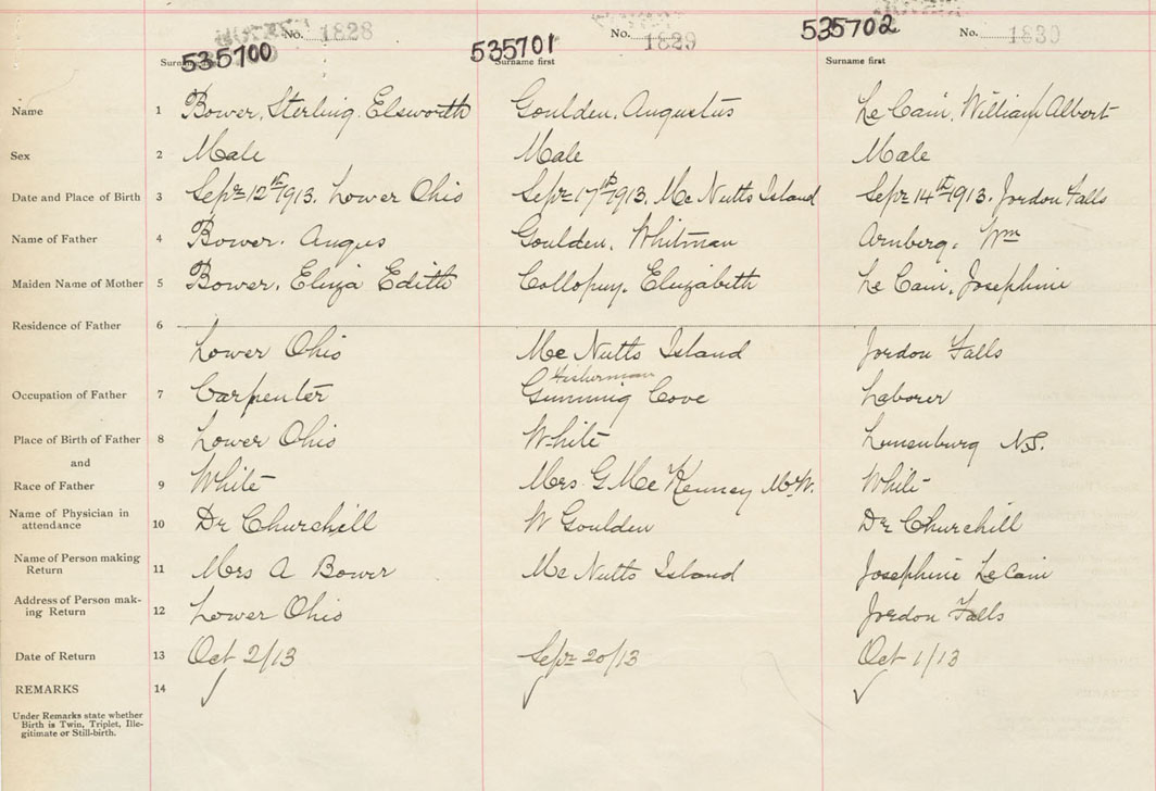 Male Birth Registration: Year: 1913 number: 53500700