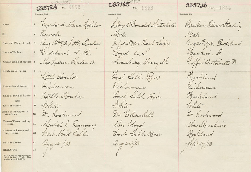 Female Birth Registration: Year: 1913 number: 53500724