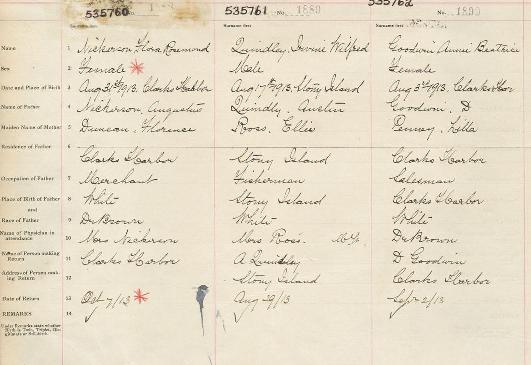 Female Birth Registration: Year: 1913 number: 53500760