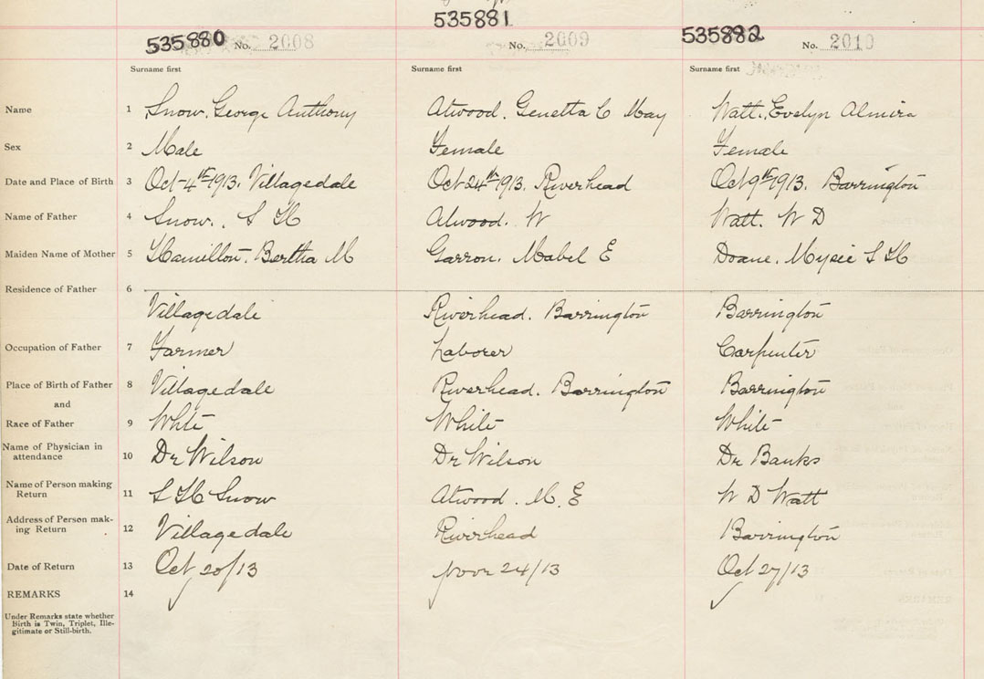 Female Birth Registration: Year: 1913 number: 53500882