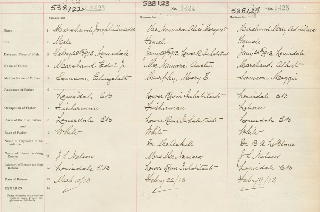 Female Birth Registration: Year: 1913 number: 53800424