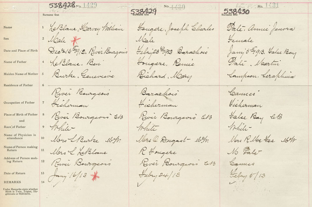 Female Birth Registration: Year: 1913 number: 53800430