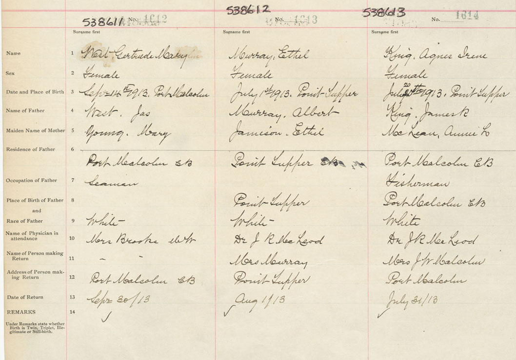 Female Birth Registration: Year: 1913 number: 53800611