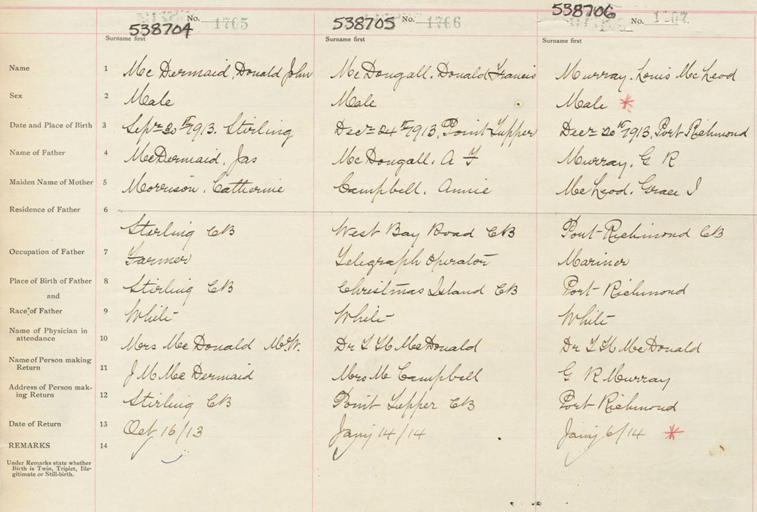 Male Birth Registration: Year: 1913 number: 53800706