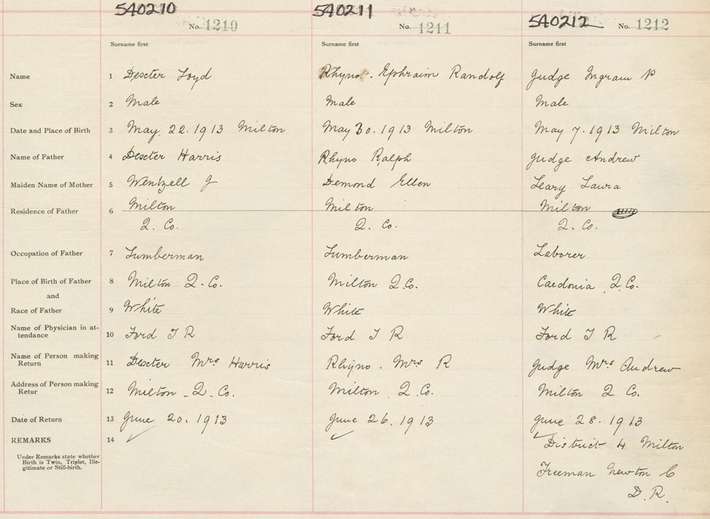 Male Birth Registration: Year: 1913 number: 54000212