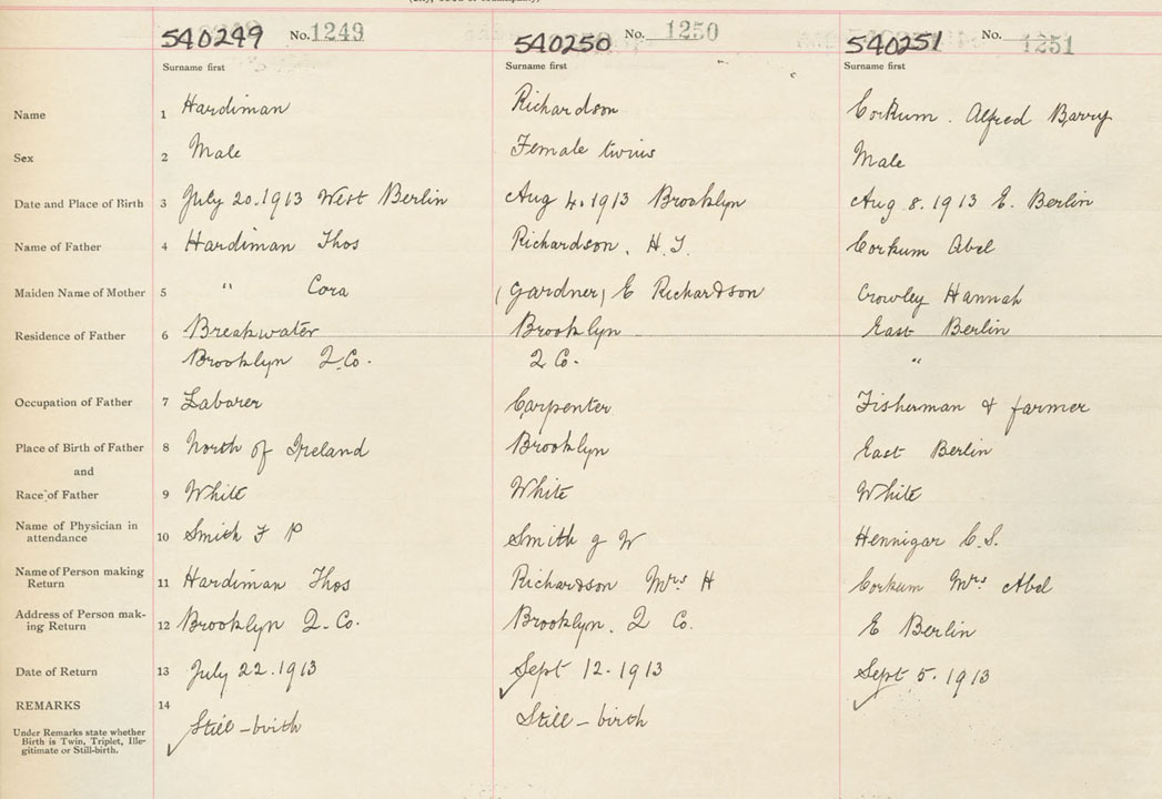 Male Birth Registration: Year: 1913 number: 54000251