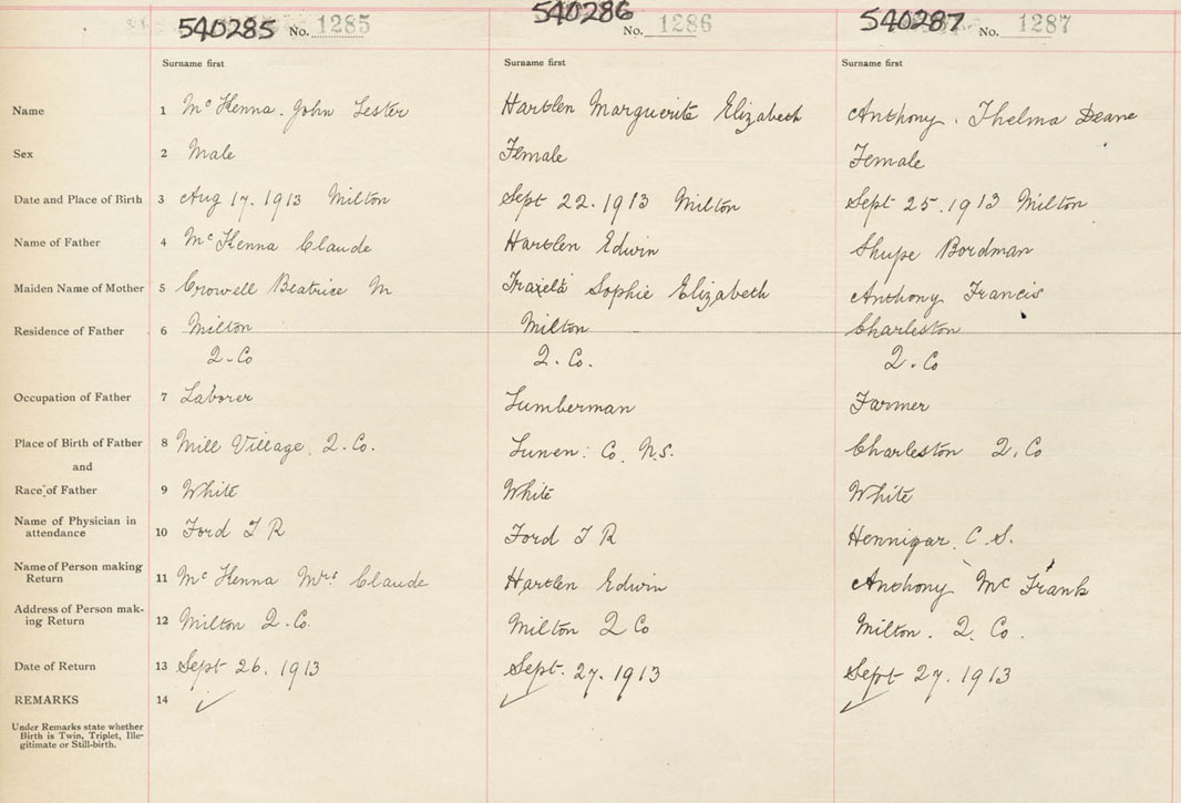 Male Birth Registration: Year: 1913 number: 54000285