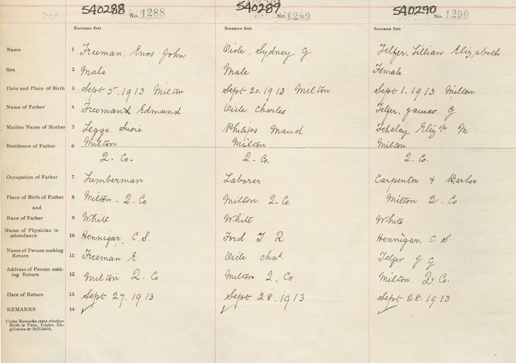Male Birth Registration: Year: 1913 number: 54000288