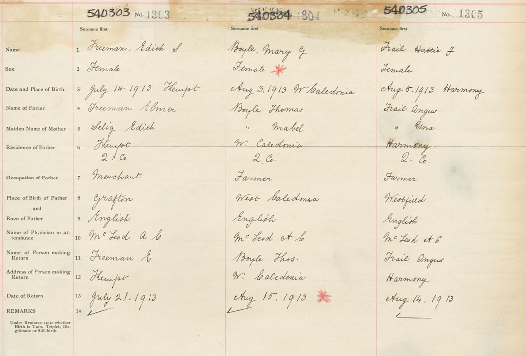 Female Birth Registration: Year: 1913 number: 54000303