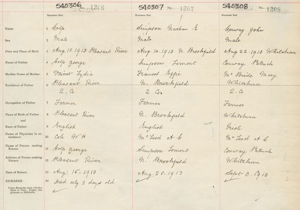 Male Birth Registration: Year: 1913 number: 54000307