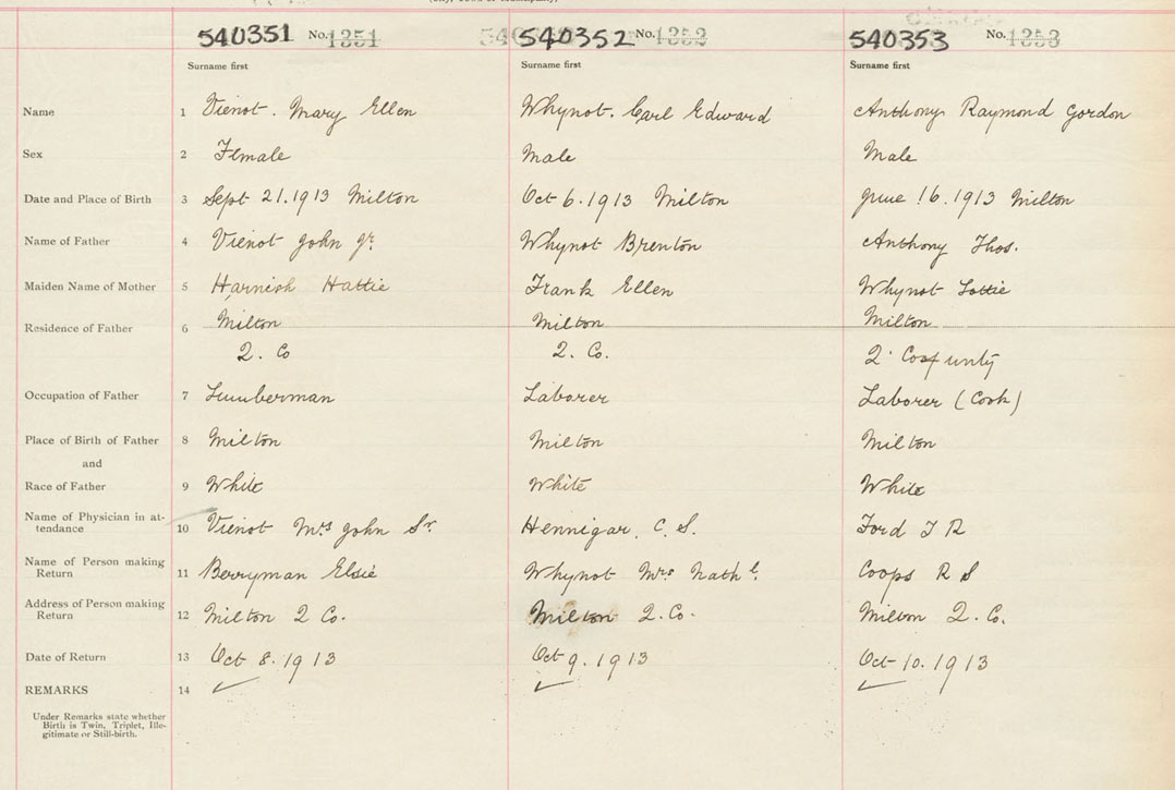 Female Birth Registration: Year: 1913 number: 54000351