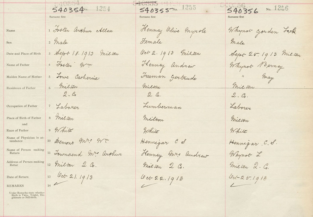 Male Birth Registration: Year: 1913 number: 54000354