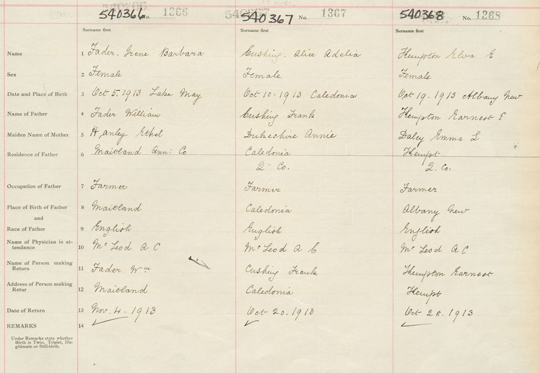 Female Birth Registration: Year: 1913 number: 54000366