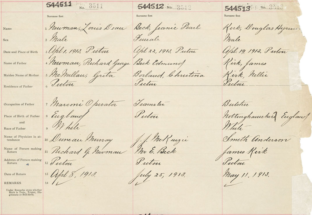 Male Birth Registration: Year: 1913 number: 54400513