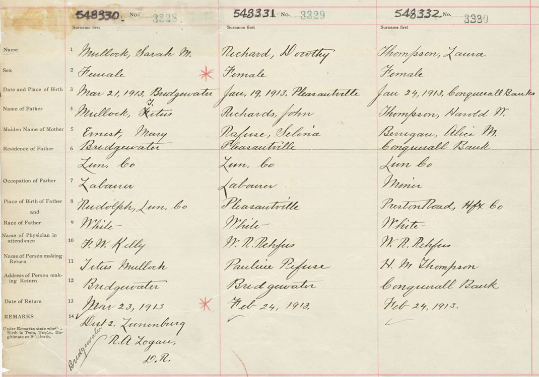Female Birth Registration: Year: 1913 number: 54800330