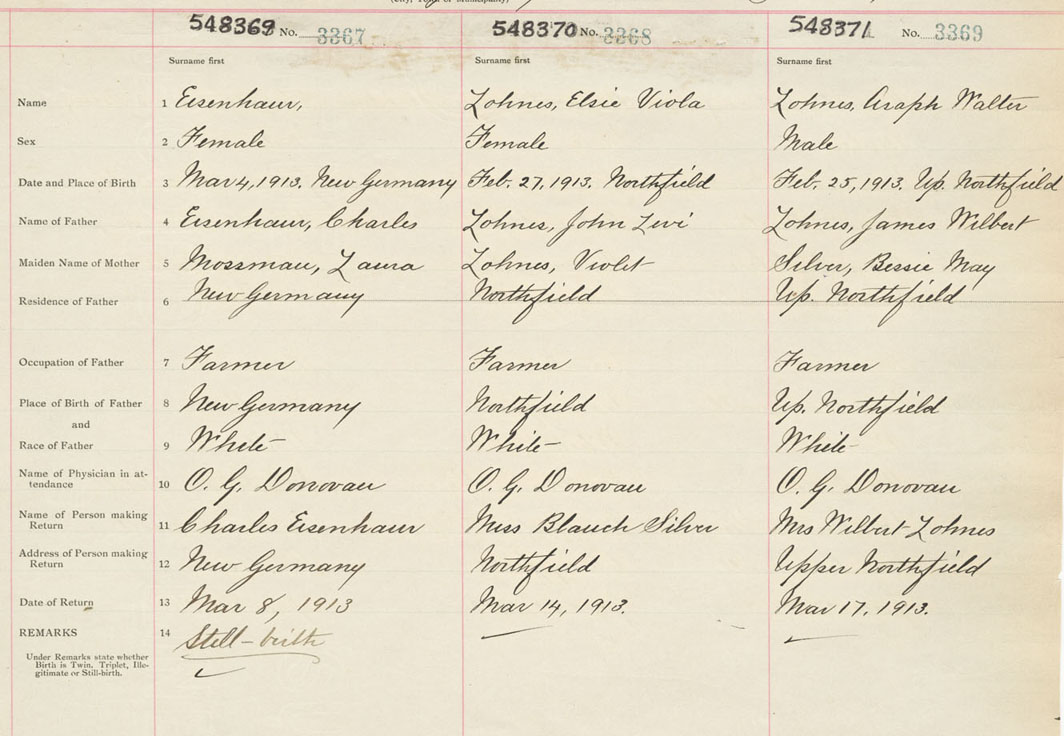 Female Birth Registration: Year: 1913 number: 54800369