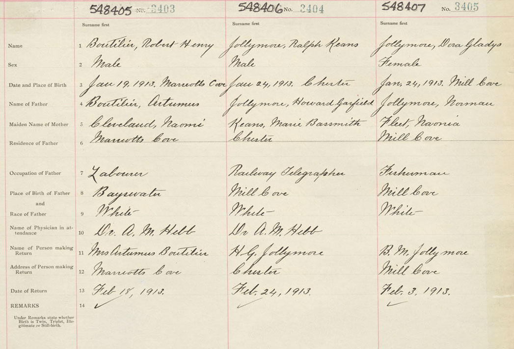 Male Birth Registration: Year: 1913 number: 54800405