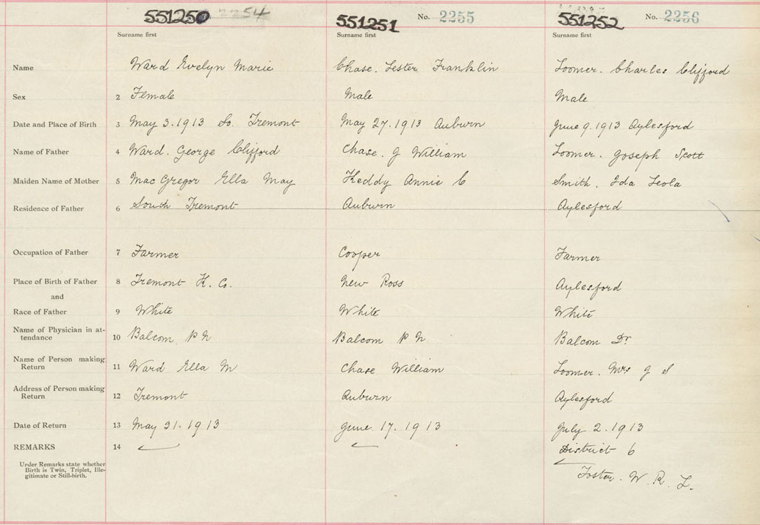 Male Birth Registration: Year: 1913 number: 55100252