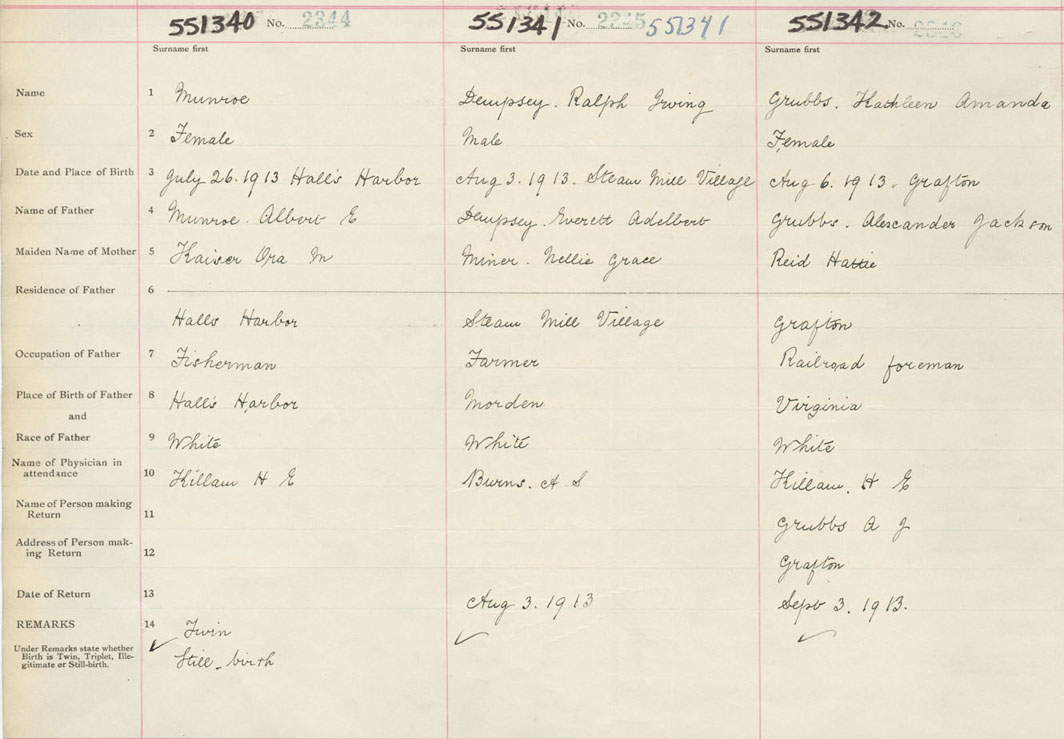 Female Birth Registration: Year: 1913 number: 55100342