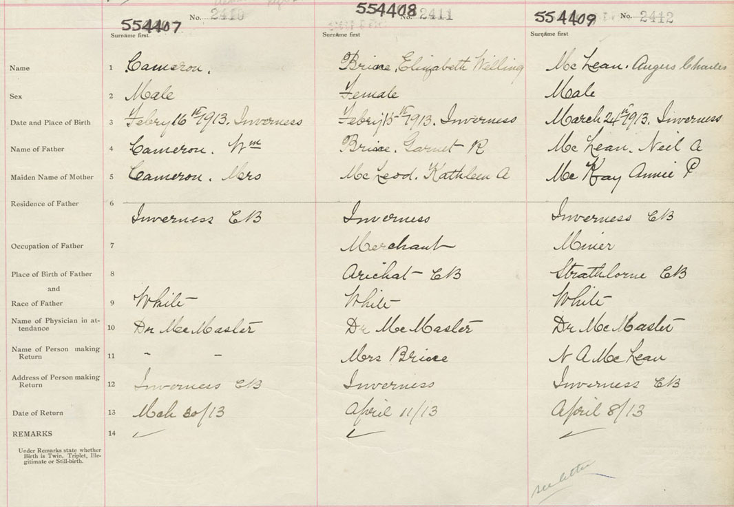 Male Birth Registration: Year: 1913 number: 55400409