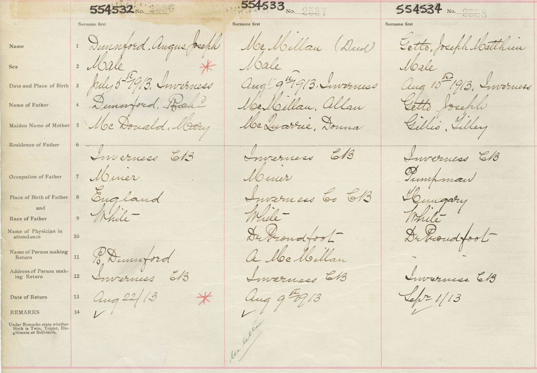 Male Birth Registration: Year: 1913 number: 55400532