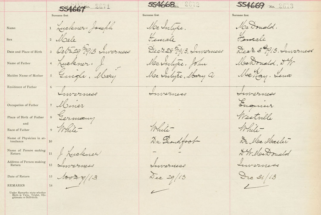 Male Birth Registration: Year: 1913 number: 55400667