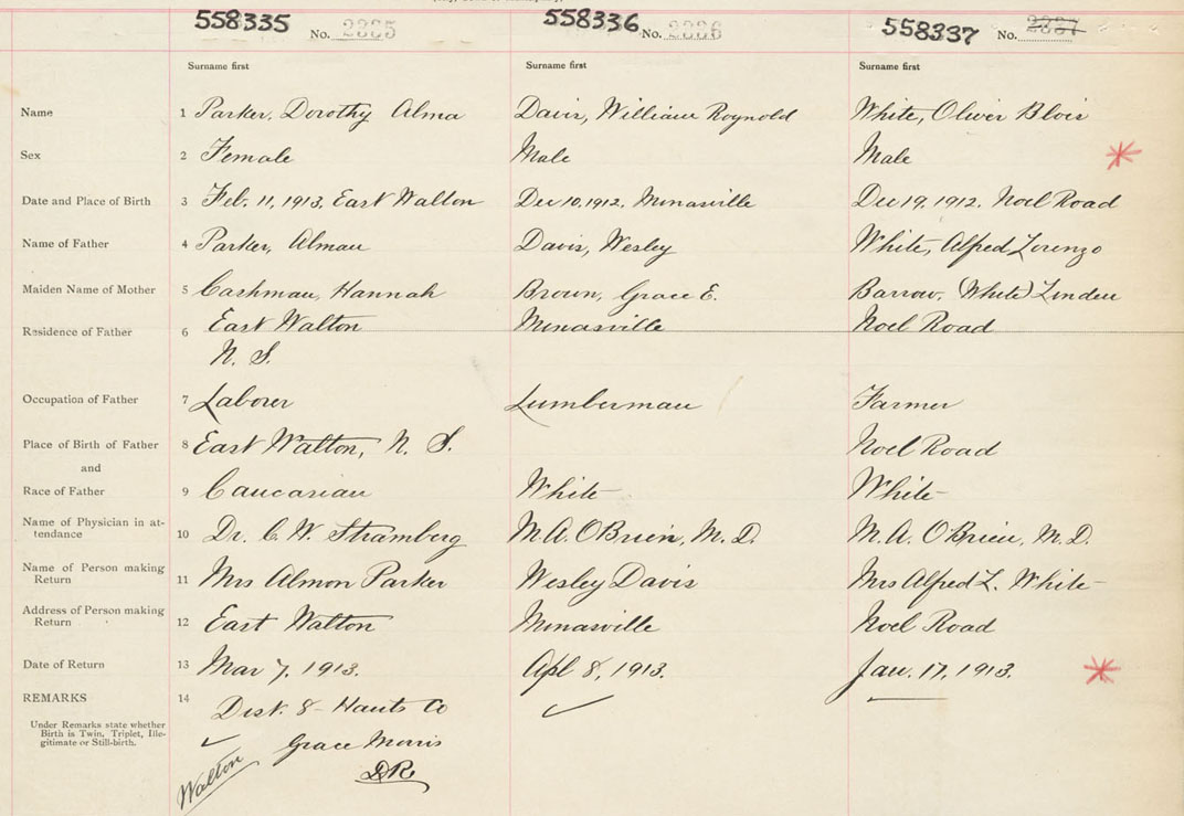 Male Birth Registration: Year: 1913 number: 55800337