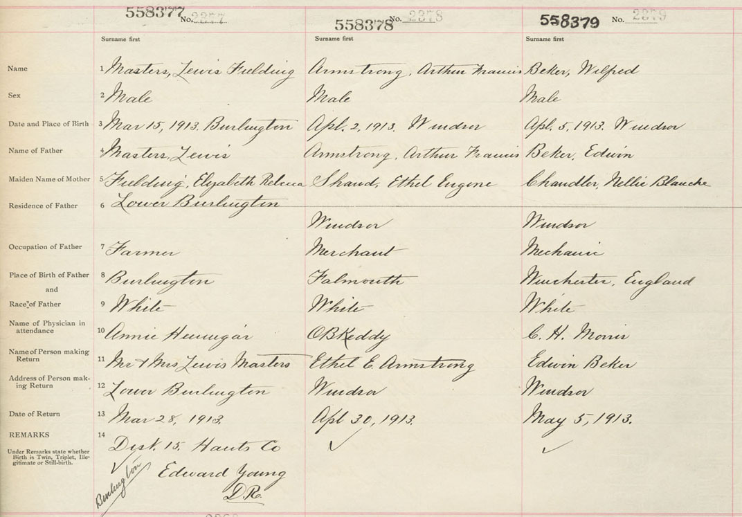 Male Birth Registration: Year: 1913 number: 55800377