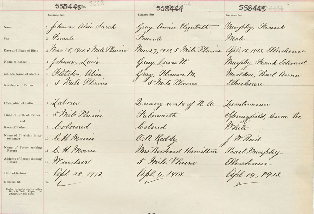 Male Birth Registration: Year: 1913 number: 55800445