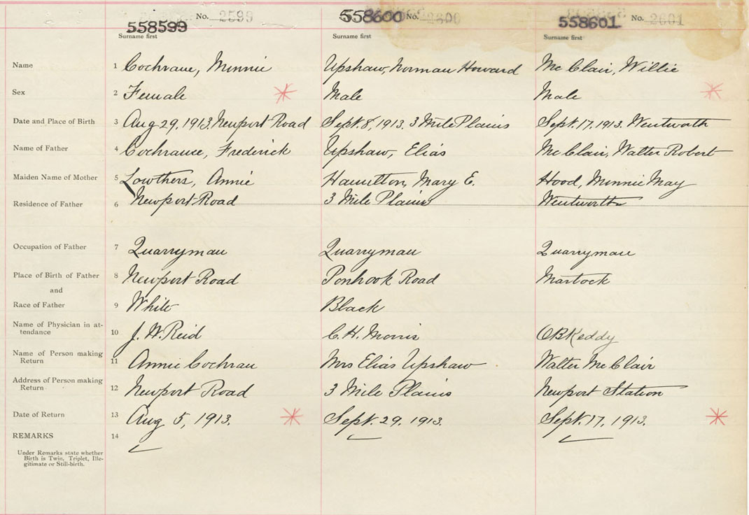 Female Birth Registration: Year: 1913 number: 55800599