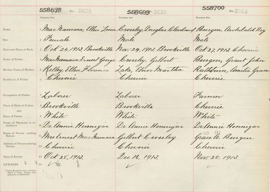 Female Birth Registration: Year: 1913 number: 55800698