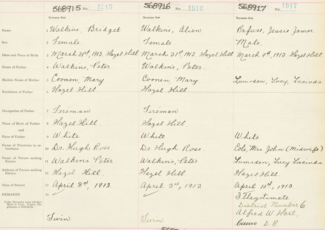 Male Birth Registration: Year: 1913 number: 56800917