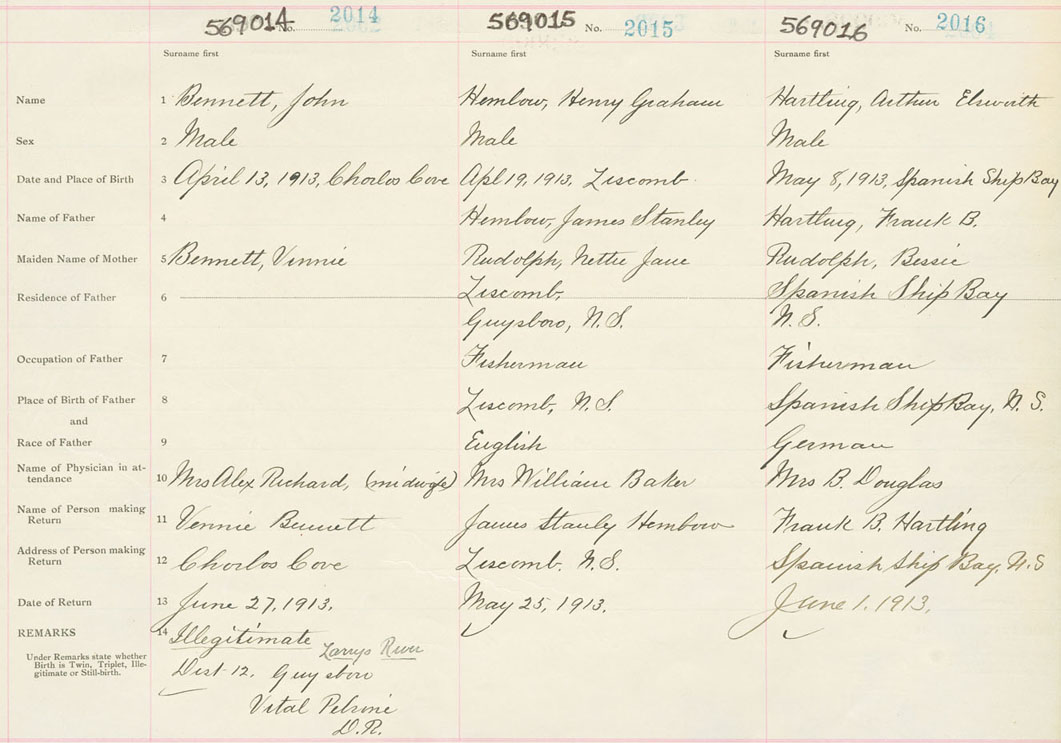 Male Birth Registration: Year: 1913 number: 56900014
