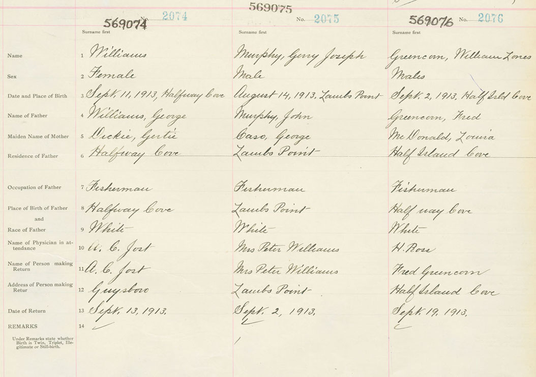 Female Birth Registration: Year: 1913 number: 56900074