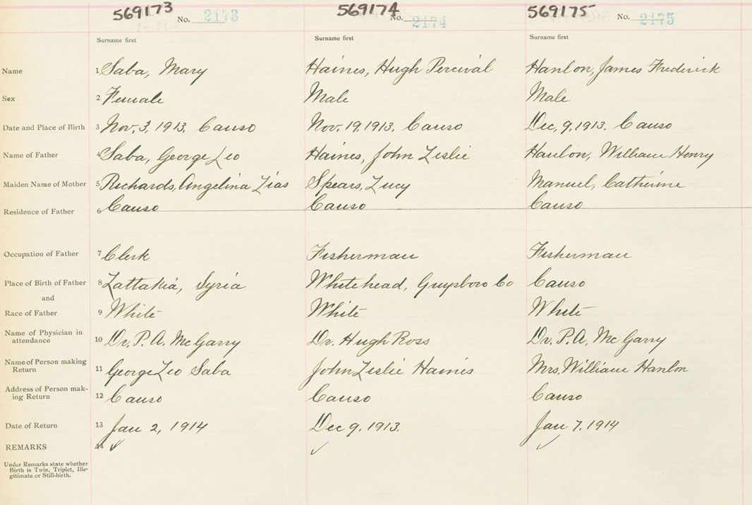 Female Birth Registration: Year: 1913 number: 56900173
