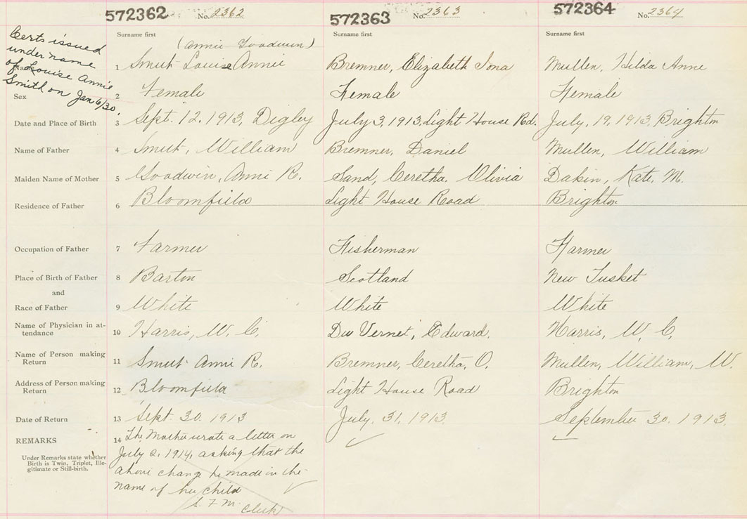 Female Birth Registration: Year: 1913 number: 57200364
