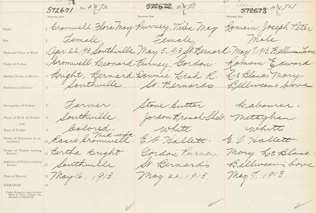 Male Birth Registration: Year: 1913 number: 57200673