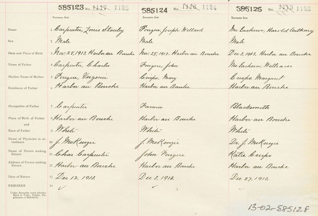 Male Birth Registration: Year: 1913 number: 58500125