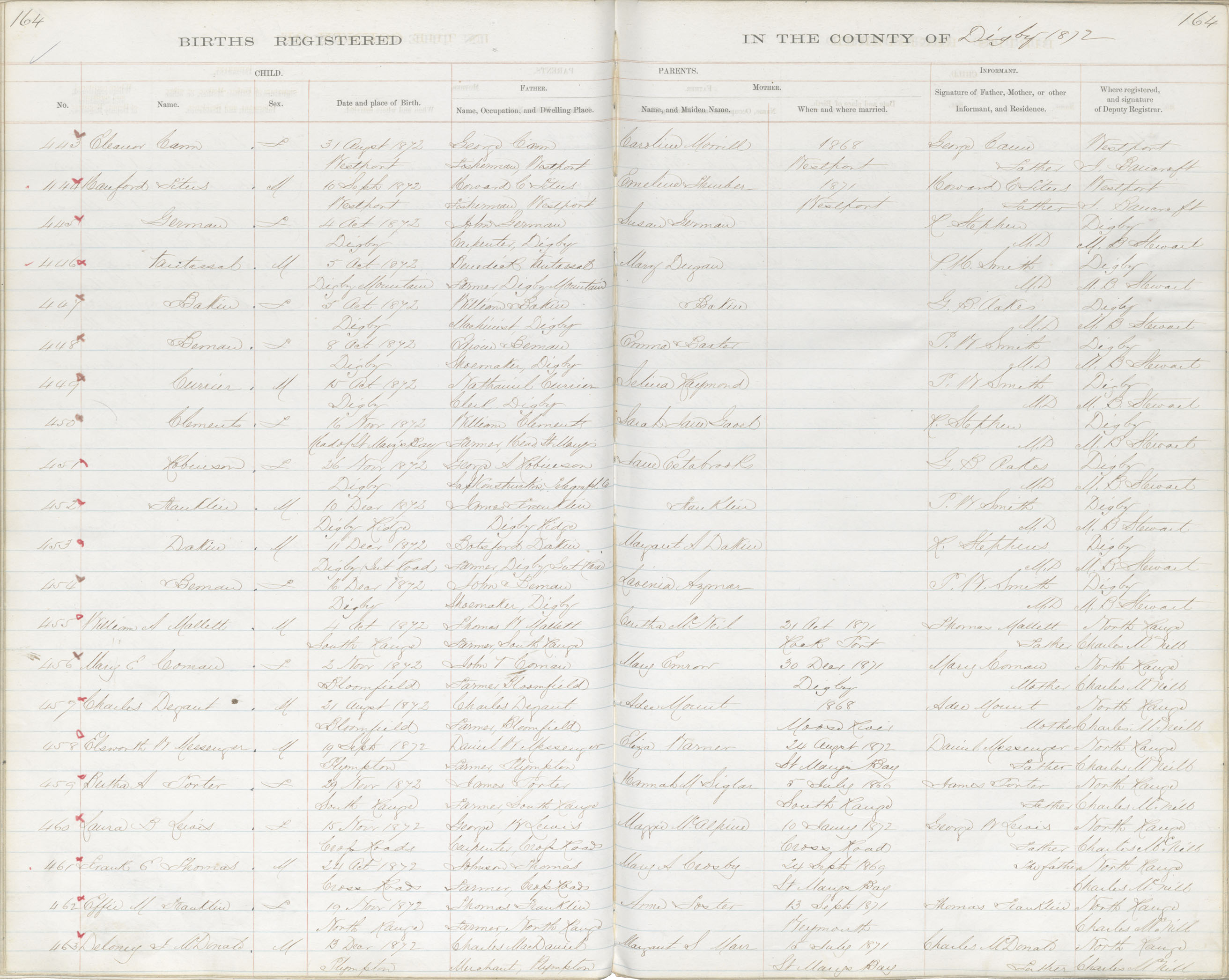 Birth Registration: Year: 1872 book: 1807 page: 164 number: 463