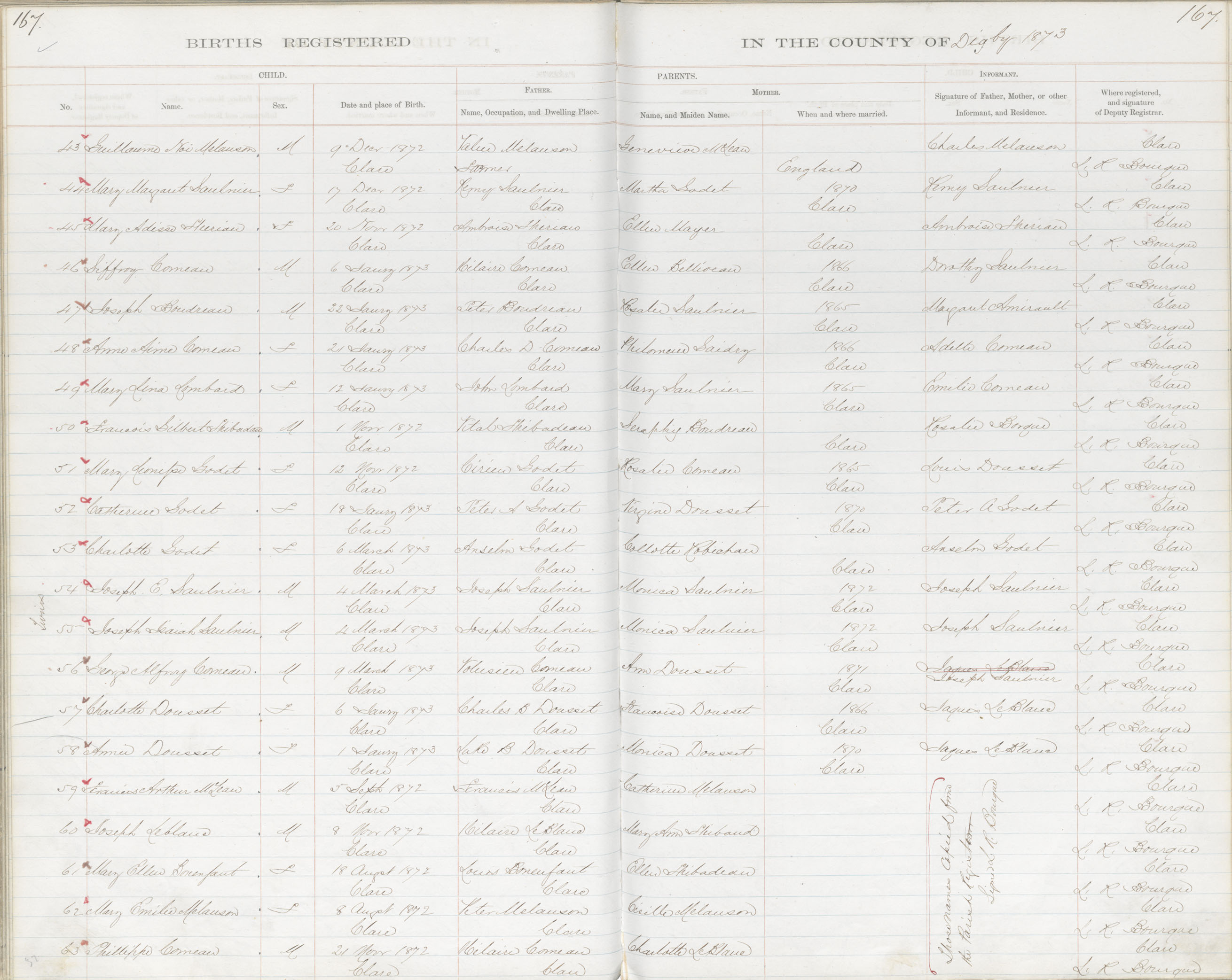 Birth Registration: Year: 1872 book: 1807 page: 167 number: 63