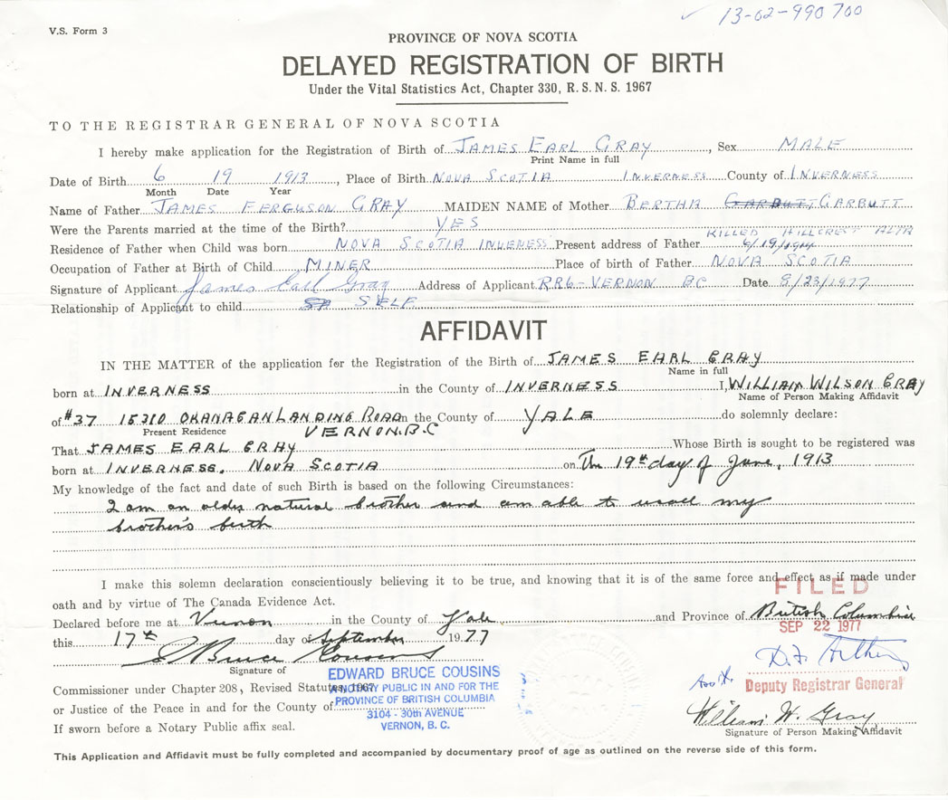 Male Birth Registration: Year: 1913 number: 99000700