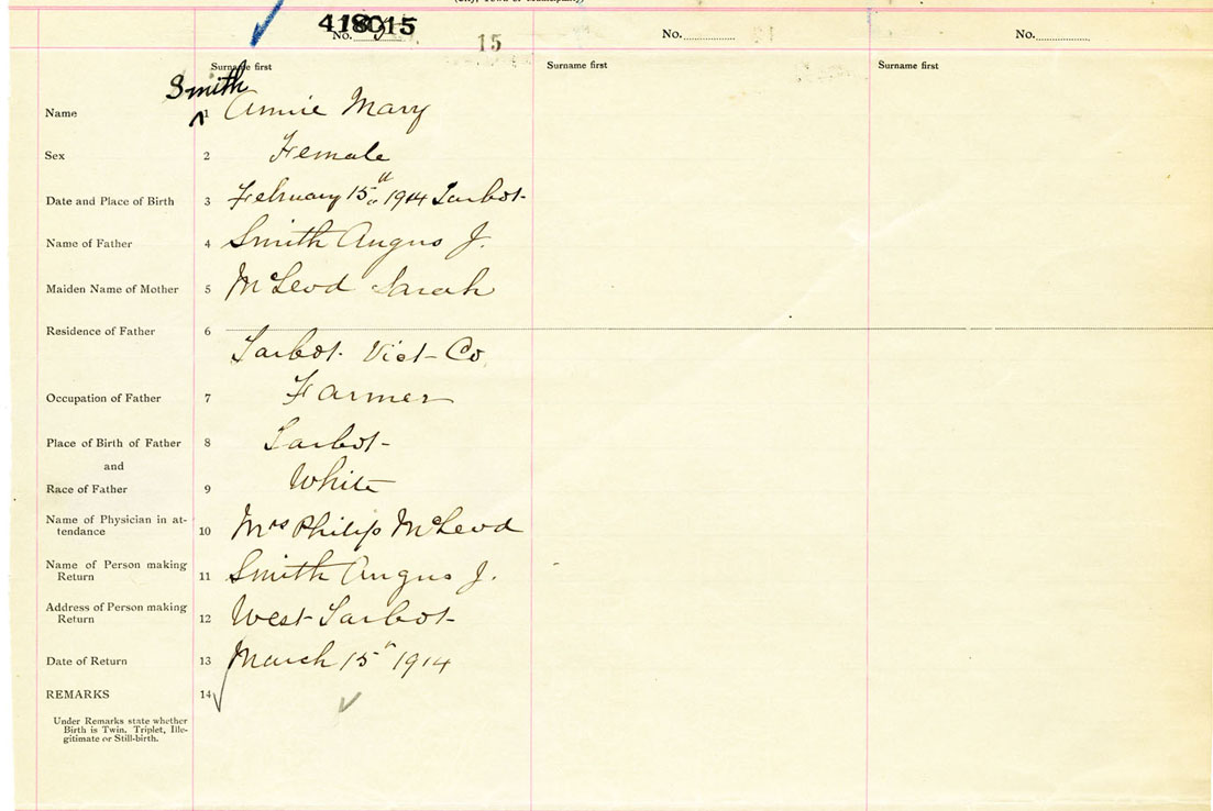 Female Birth Registration: Year: 1914 number: 41800015