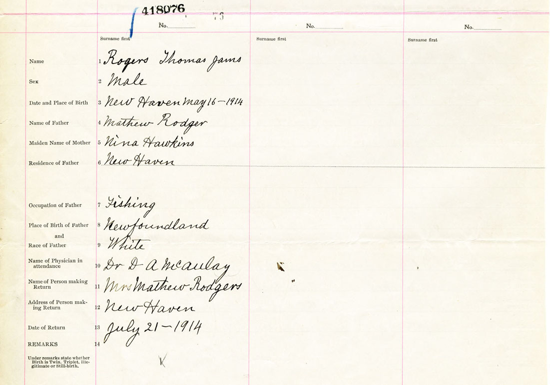 Male Birth Registration: Year: 1914 number: 41800076