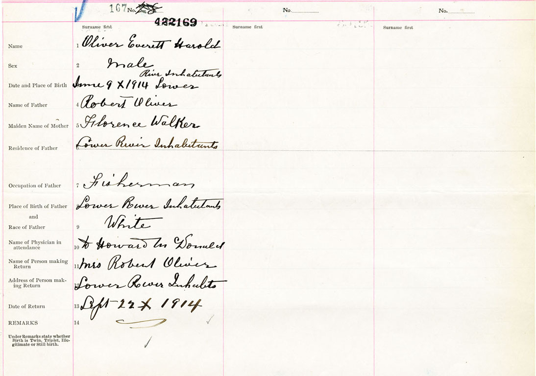 Male Birth Registration: Year: 1914 number: 42200169