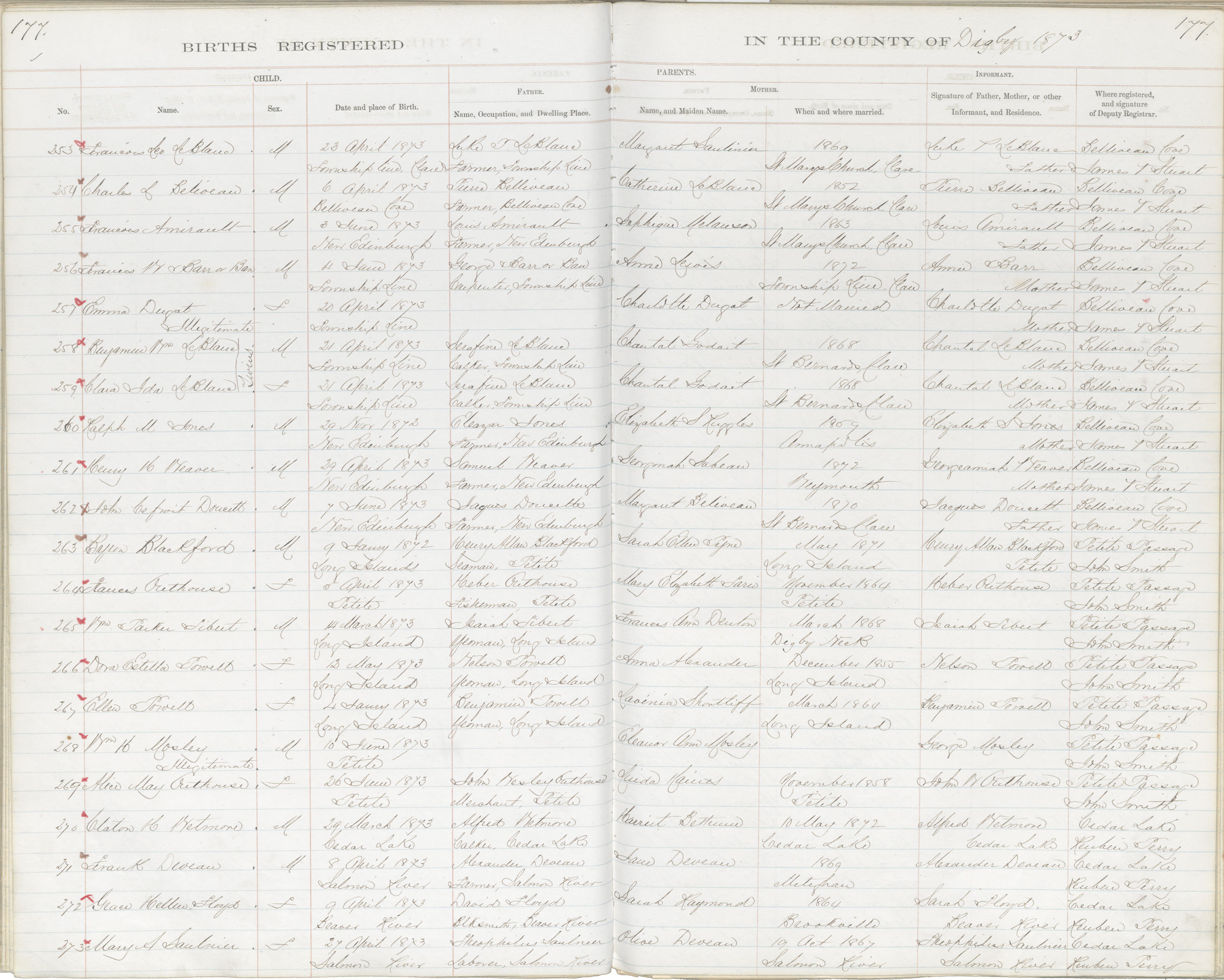 Birth Registration: Year: 1873 book: 1807 page: 177 number: 253