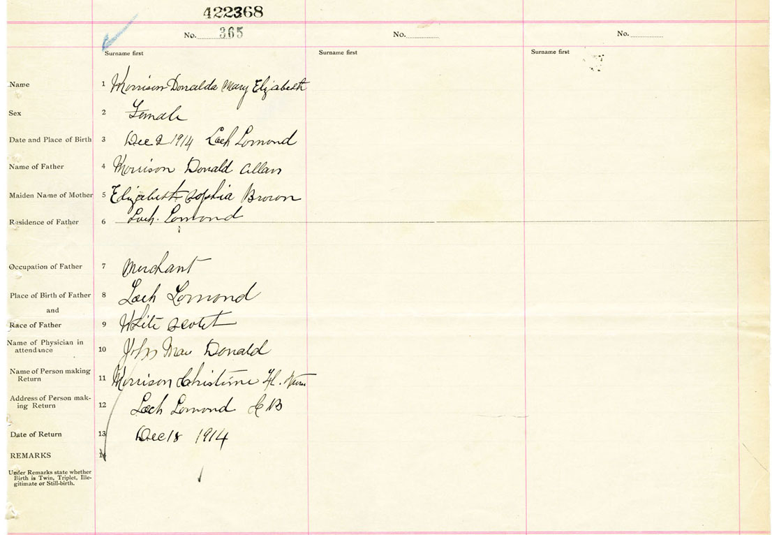 Female Birth Registration: Year: 1914 number: 42200368
